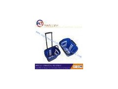 Small Elegant Blue Plastic Shopping Basket With Two Wheels For Super Market / Shop