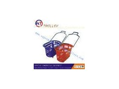 2) Plastic baskets with plastic handles for supermarkets and deparment stores .